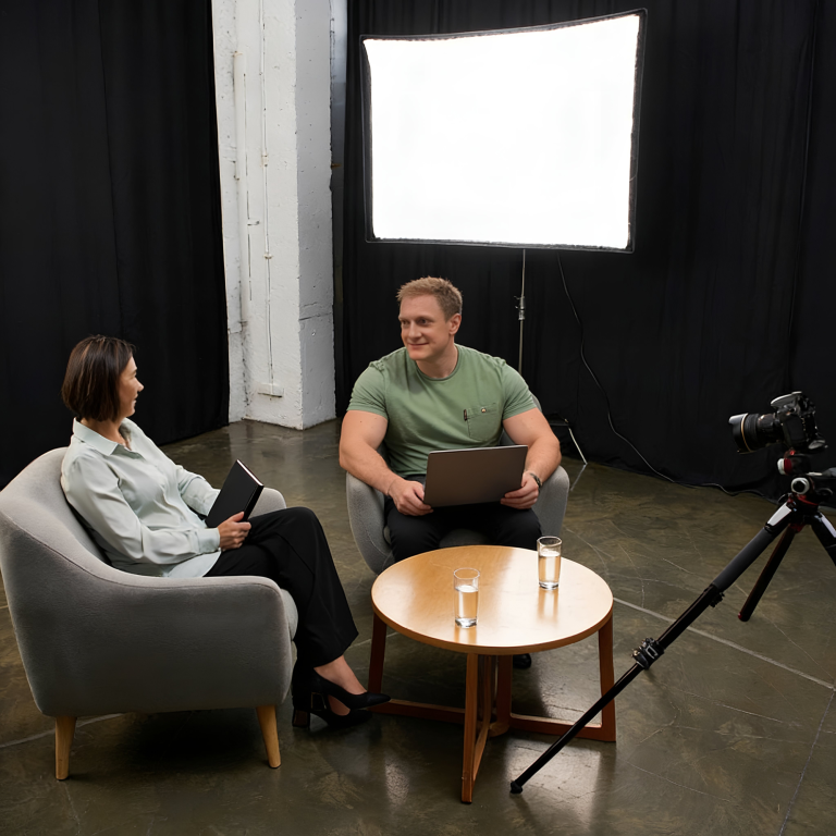 Most people don't relish being on camera. We make a friendly, comfortable atmosphere to help you talk about what you do best
